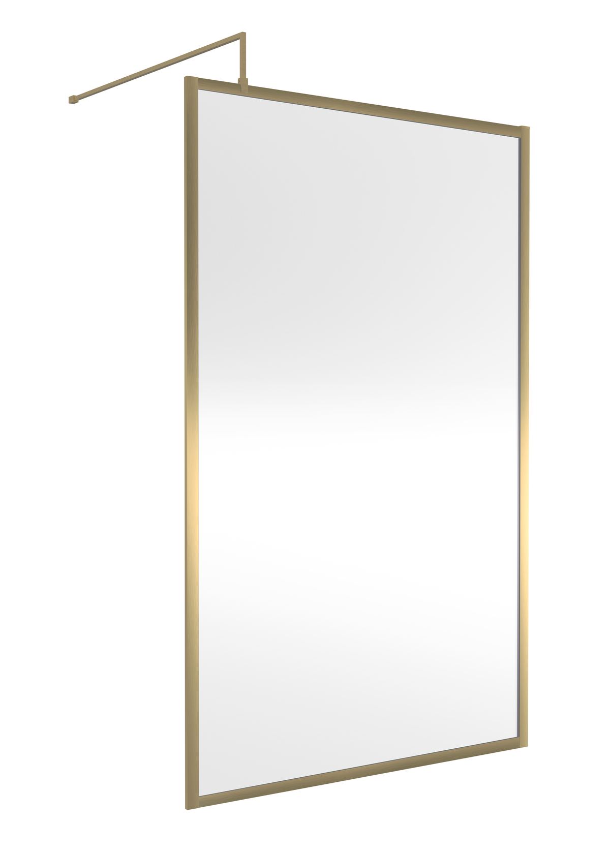 On trend brushed brass full outer frame design. 8mm toughened safety glass. Shower tray sold separately. Includes support bar and profile kit.