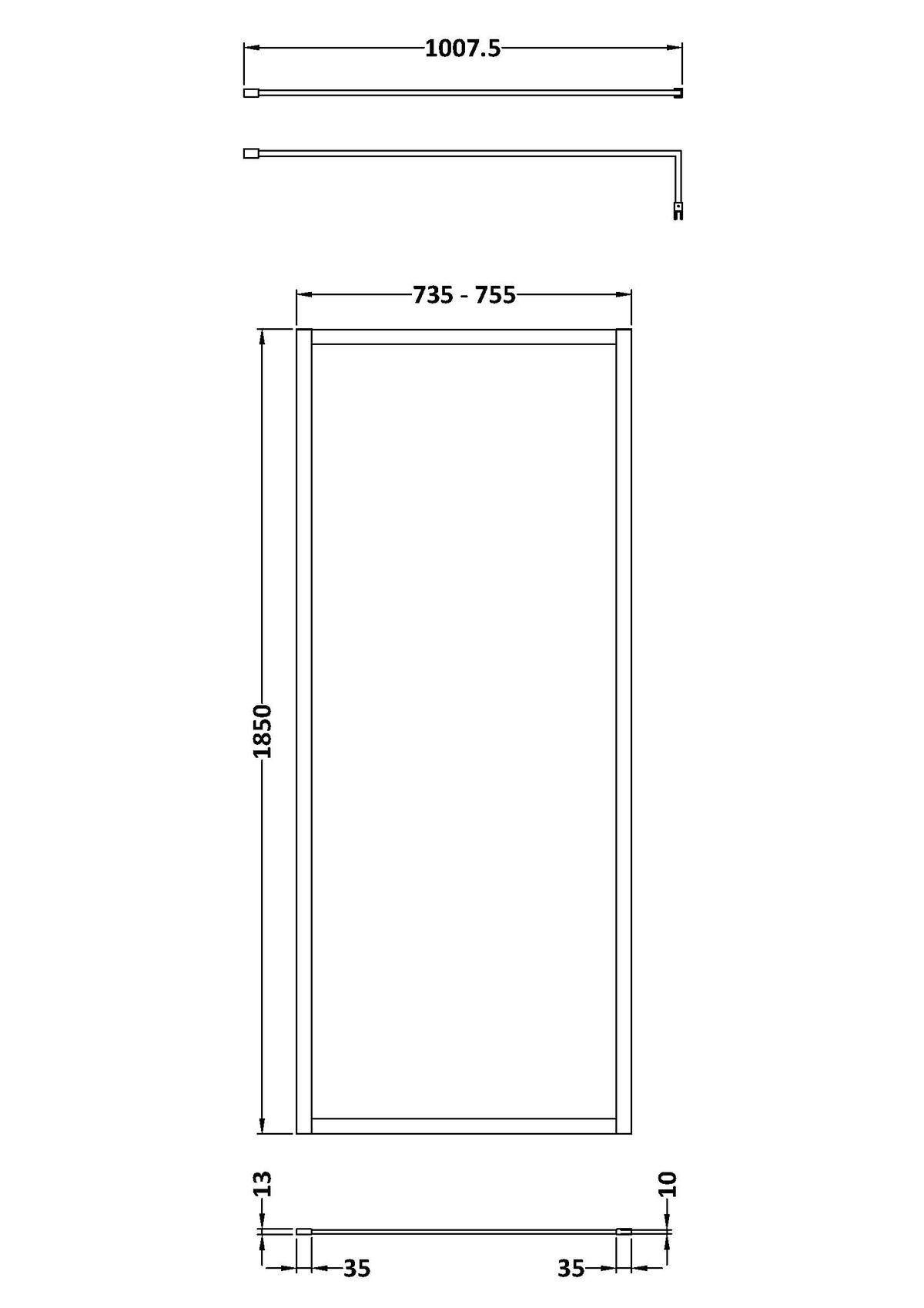 Full Outer Frame Wetroom Screen 1850x760x8mm