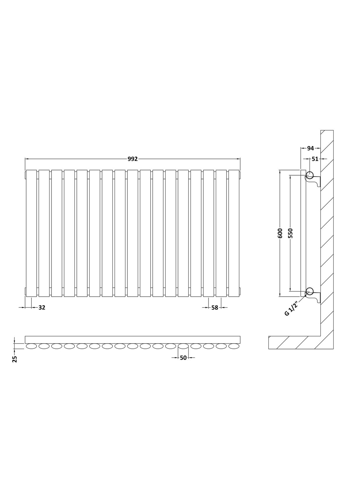 Horizontal Single Panel Radiator 600 x 992