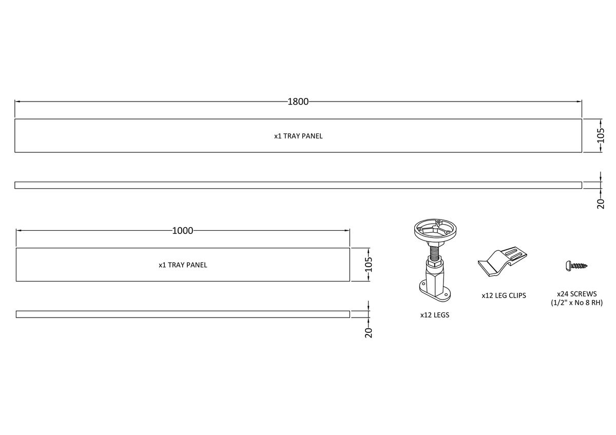 The leg set turns the Pearlstone tray into an easy-plumb tray. Leg sets can be fitted with a battery powered driver – no need for pilot holes. Suitable for use with selected rectangular Pearlstone trays.