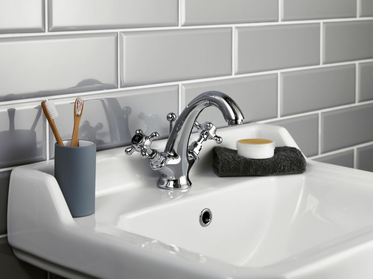 Luxury crosshead handle with coloured indices. Traditional hexagonal collar. Suitable for low pressure systems. Ceramic disc technology for long life and smooth operation. High quality brass internals with luxury chrome finish.