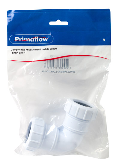 PS Comp waste knuckle bend – white 32mm