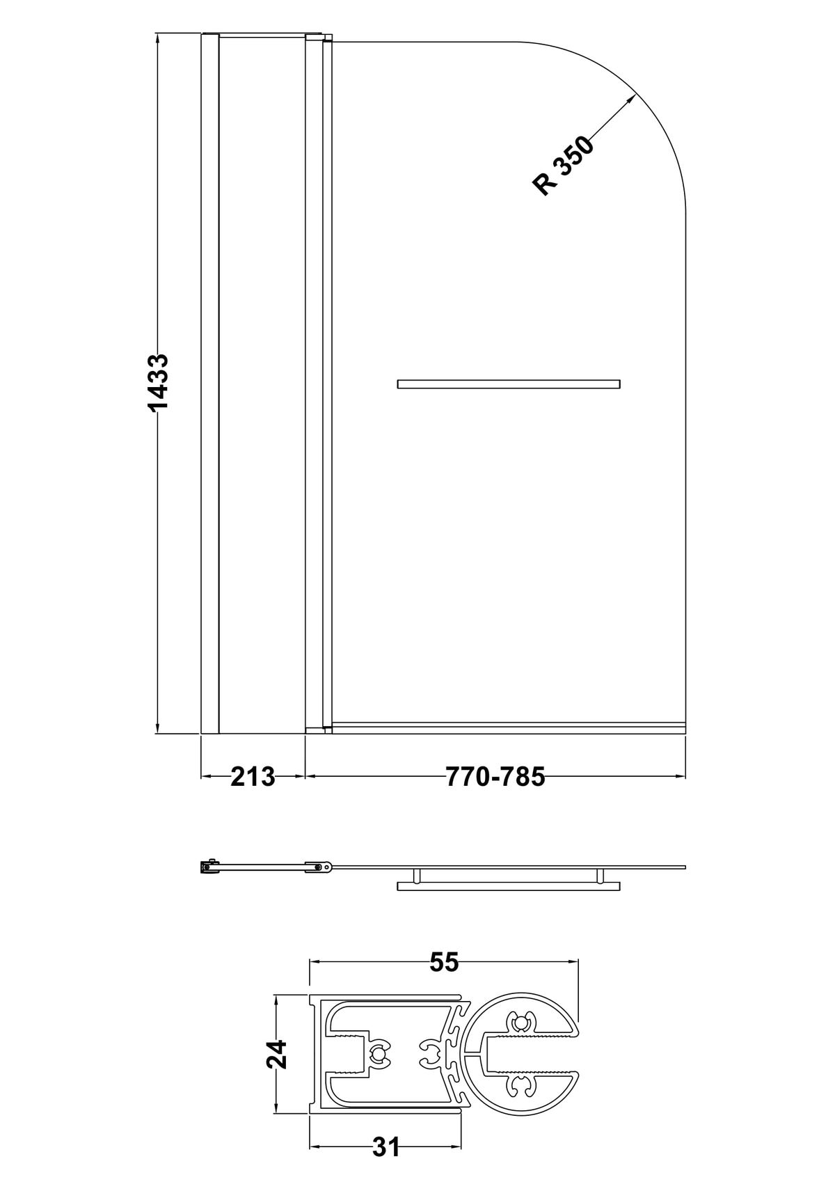 Round Bath Screen Fixed Panel & Rail