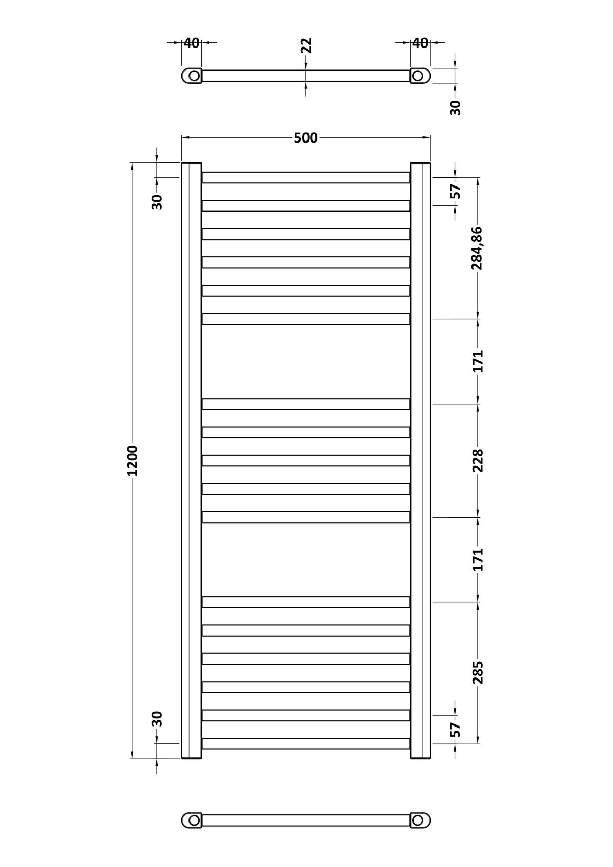 Round Straight Towel Radiator 1200×500