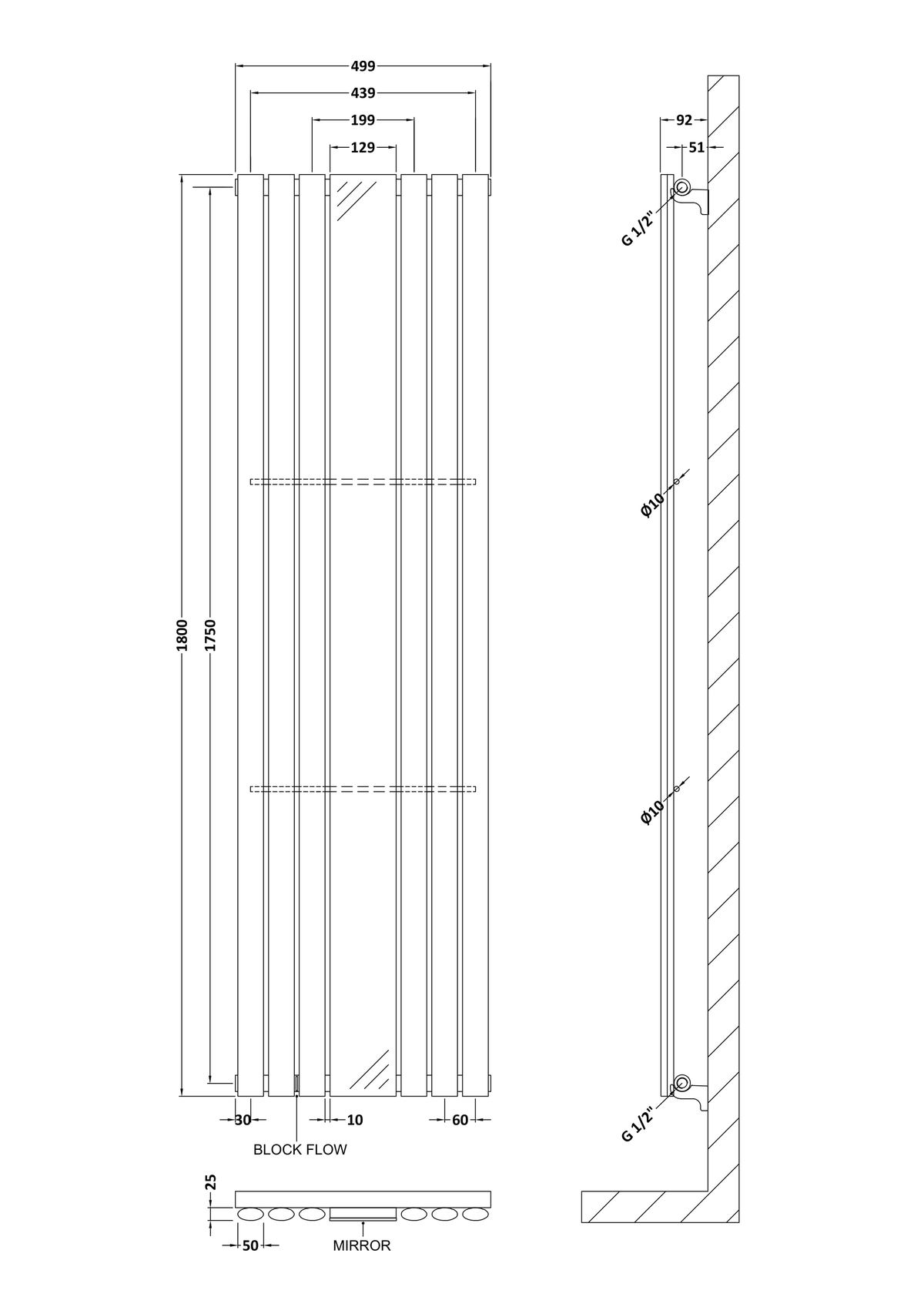 This rounded edged radiator will be a classic and simplistic feature in any setting. Supplied with mirror. All heating products come complete with fixing screws. Valves sold separately. After installing any new radiators; when refilling the system it is recommended a suitable inhibitor is used. All tappings are 1/2 British Standard Pipe. We recommend pipework is not installed until receipt of radiator or heated towel rail.