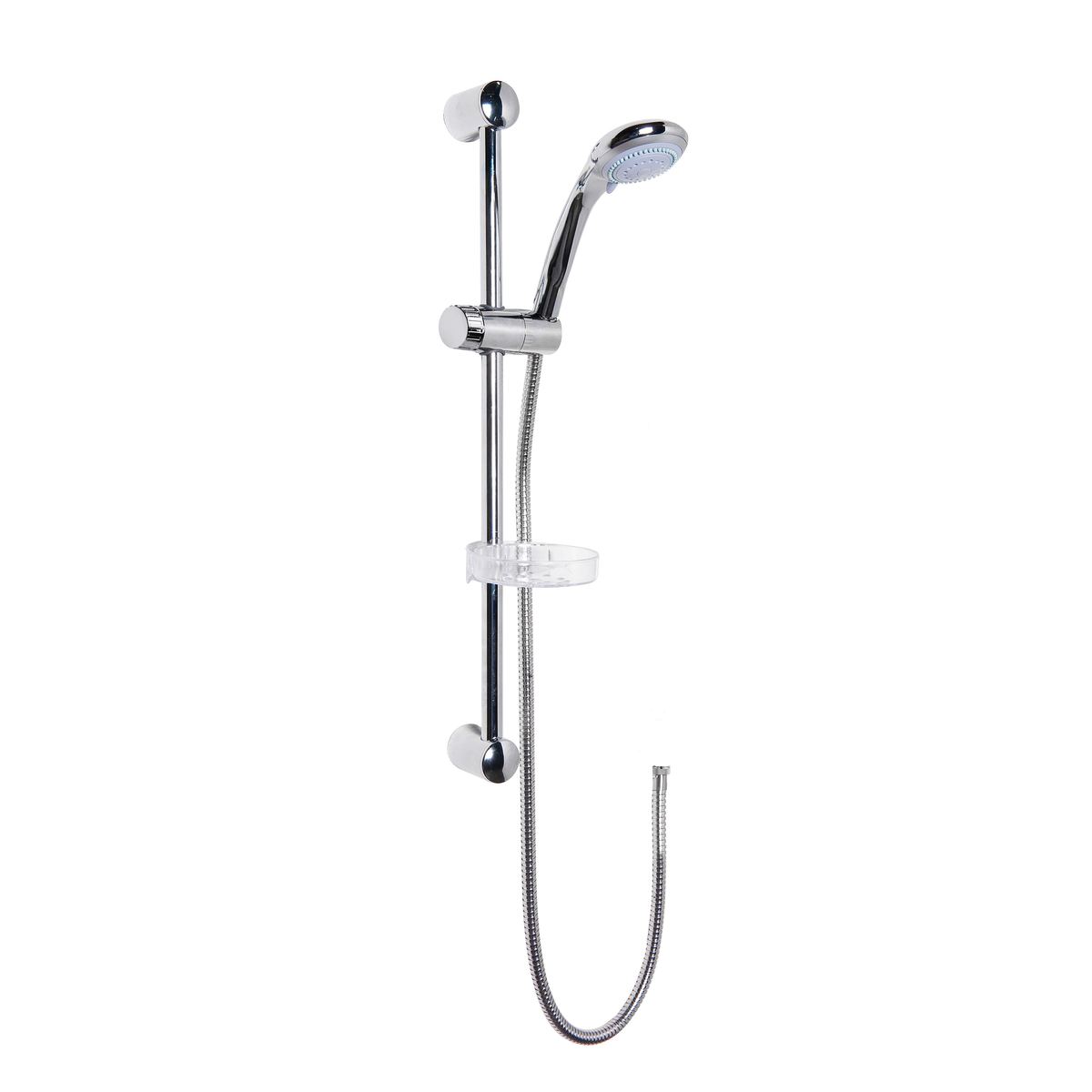 Multi-function round handset. Easy clean shower head. Supplied with soap dish. Outlet elbow not included.