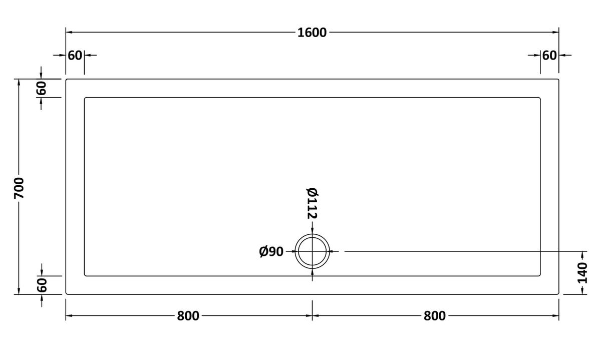 Slip Resistant Rectangular Shower Tray 1600 x 700mm
