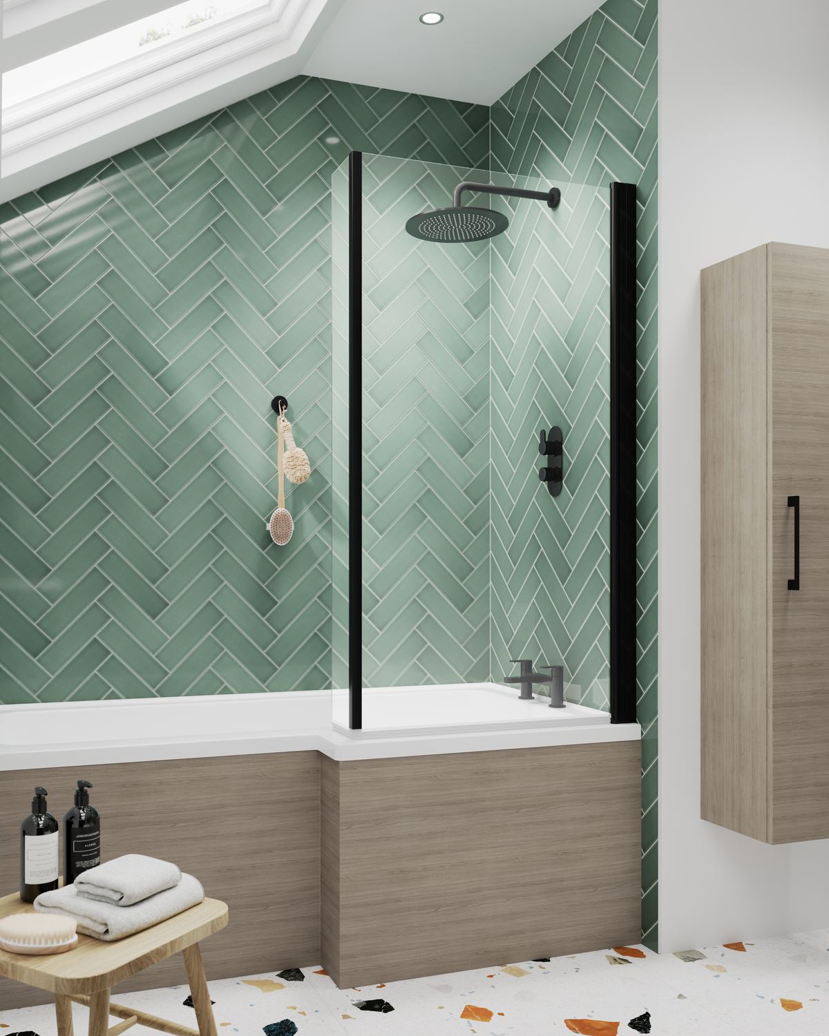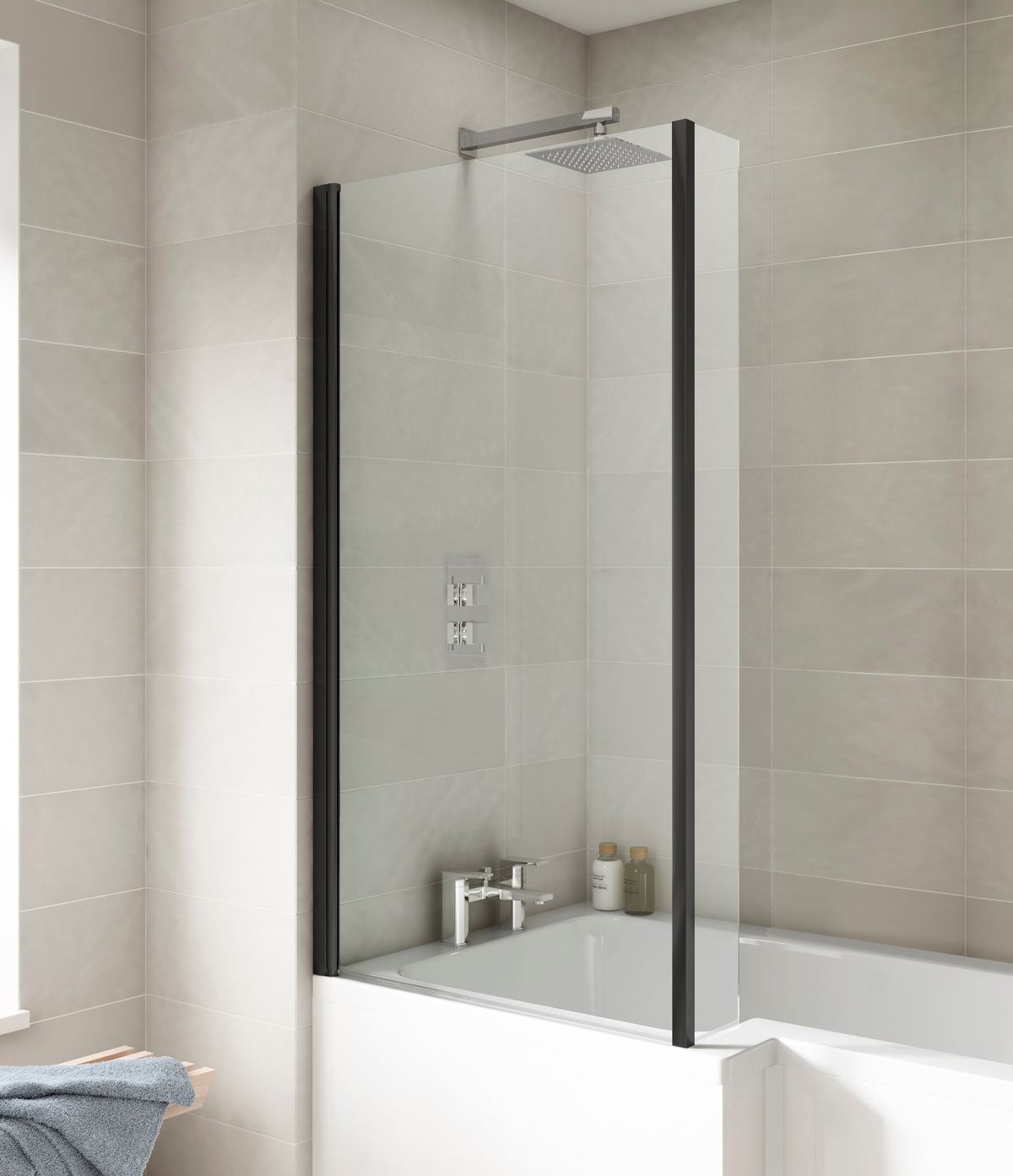 Utilise space in your bathroom and create a showering space within your bath. Every bath screen is reversible in order to perfectly fit your needs. This screen is made of 6mm toughened safety glass. Stunning contemporary matt black profile.