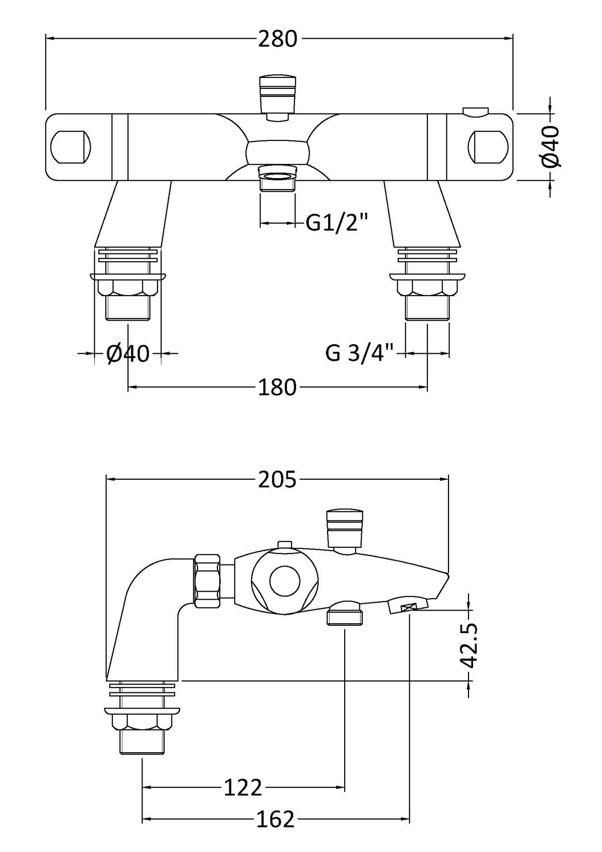 – Pipe Centres: 180