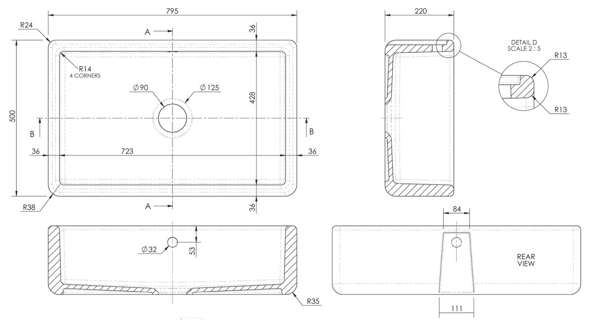 Traditional Butler Sink 795 x 500 x 220mm